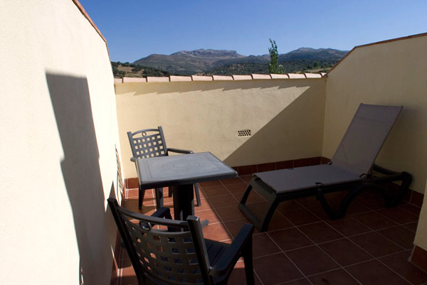 302. Habitación superior con cama de matrimonio. Terraza independiente con vistas a la sierra